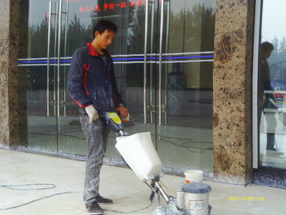 再到80年代末,緣自歐洲程序的一種工藝,“晶面處理系統”于90年代推進中國市場。這個系統就是針對水蠟工藝上硬度、光澤、清澈度不夠及工藝復雜等不足改良而成的,其工藝原理就是在石材投入使用及未受磨損前,以幾種水晶加強劑配合機械,利用石塊籍壓于熱力產生之化學作用,先將石材表層下的氣孔封閉,使其污垢不能滲入,同時表層上加上幾層熱處理保護層,起到增加石材表面的硬度和光度,更有防滑之功效,石質原有天然色澤得到帶出及全面性保護,保持度教一般水蠟高幾倍。長期使用,耗用的人力物料成本較水蠟低,無須每天補蠟及定期起蠟等復雜工序,此工藝為目前大理石保養及翻新后晶面的理想工藝,我們稱為石材打蠟第三代。